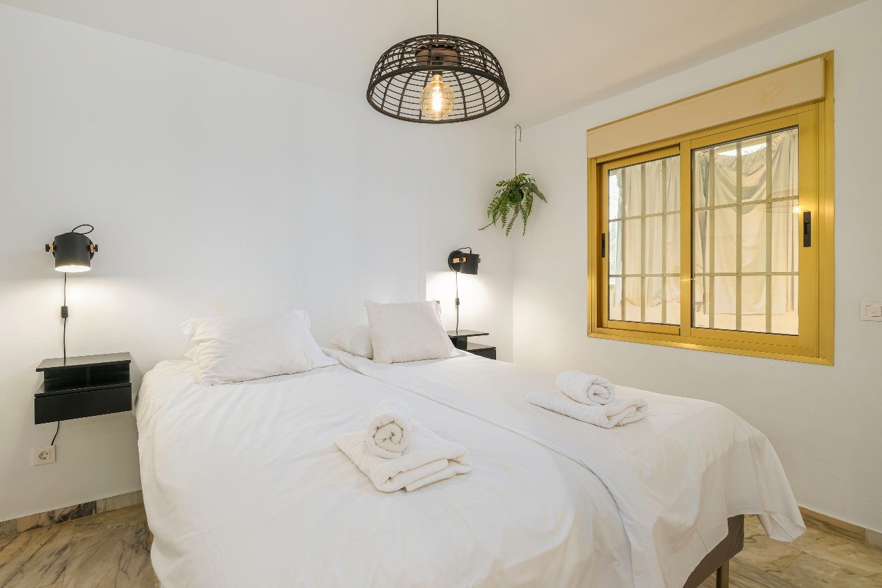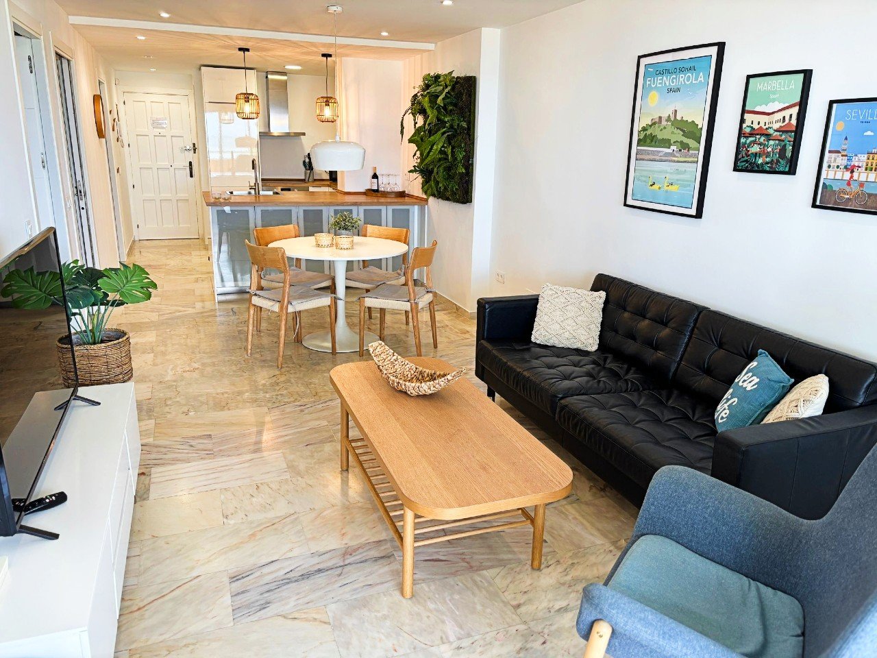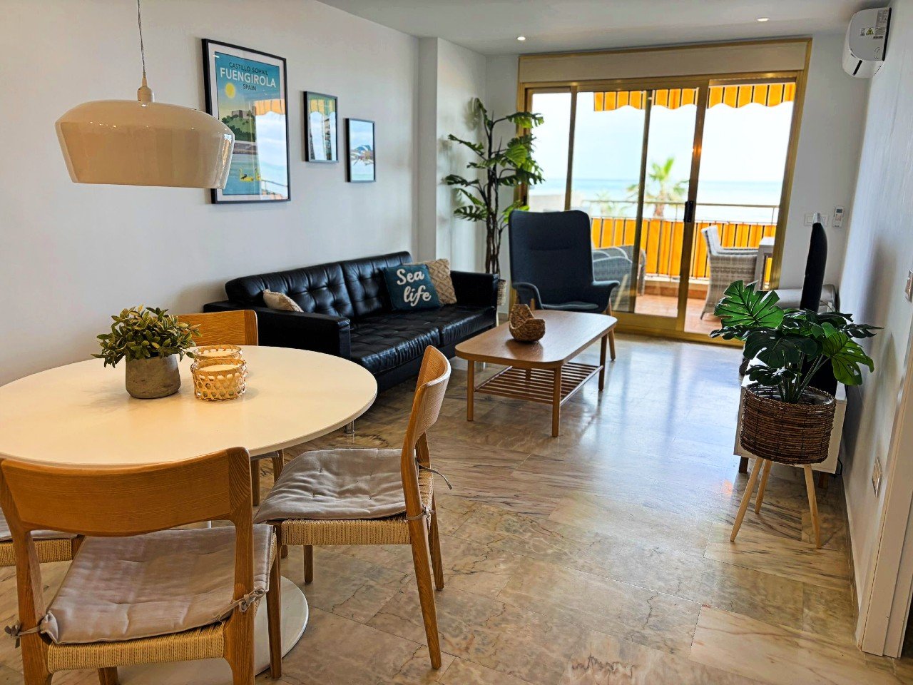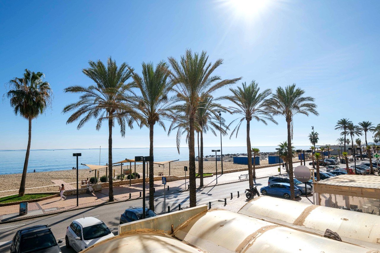 Fantastisk strandlejlighed på Paseoen.. Beliggende på Paseo Maritimo (strandpromenaden) i Fuengirola kun 30 meter fra stranden. Strandpromenaden er 7,5 km lang og med lige så meget bade og børnevenlig strand, på promenaden finder man alt hvad man har brug for, restauranter i alle former, butikker, isbarer, cafeer, banker osv. I denne bolig har man ikke brug for bil da tog og bus ligger inden for kort afstand