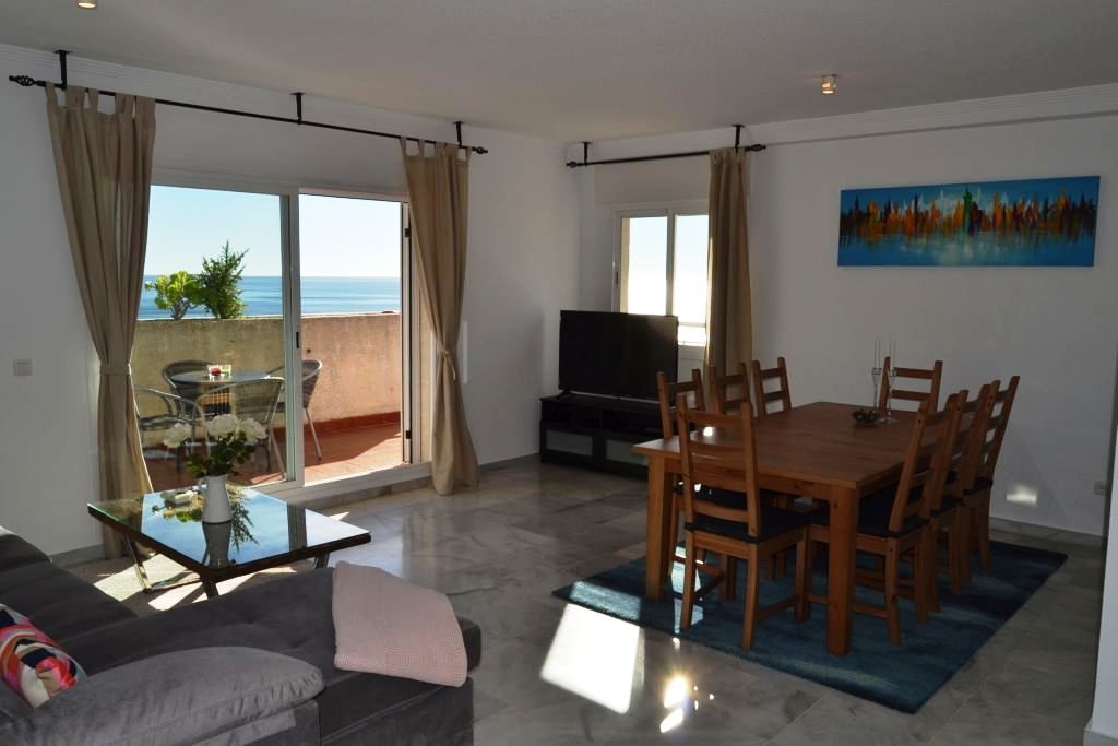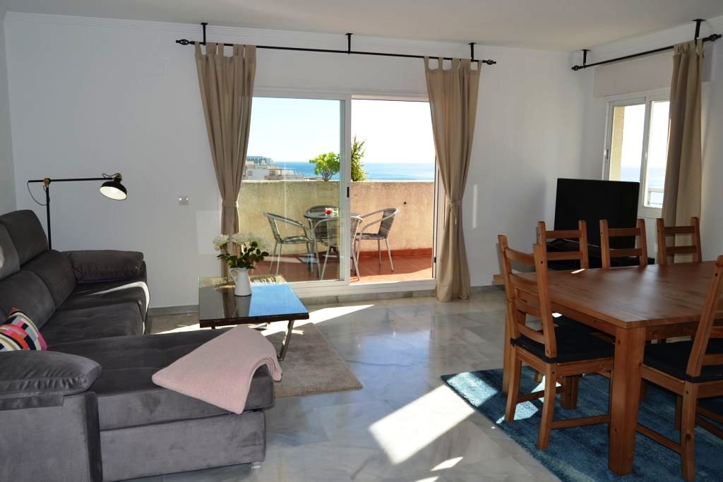 Feriebolig med super solrig tagterrasse i et skønt og roligt område. Området Torrequebrada er beliggende i Benalmadena som ligger ca 20 kilometer fra Malaga Lufthavn. Benalmadena er en skøn by med masser at byde på feks. Tivoli World som er et dansk grundlagt og inspireret tivoli som tilbyder forlystelser for alle aldre. Benalmadena Puerto som er en bådhavn hvor der tilbydes et skønt maritimt miljø med diverse bådture, restauranter, butikker omm. delfinshow, gågademiljø, golf og Benalmadena Pueblo som er en lille landsby tilhørende Benalmadena hvor alle huse er hvidmalede og er et besøg værd og selvfølgelig ikke at forglemme de skønne strande som ligger i forbindelse med Benalmadena by