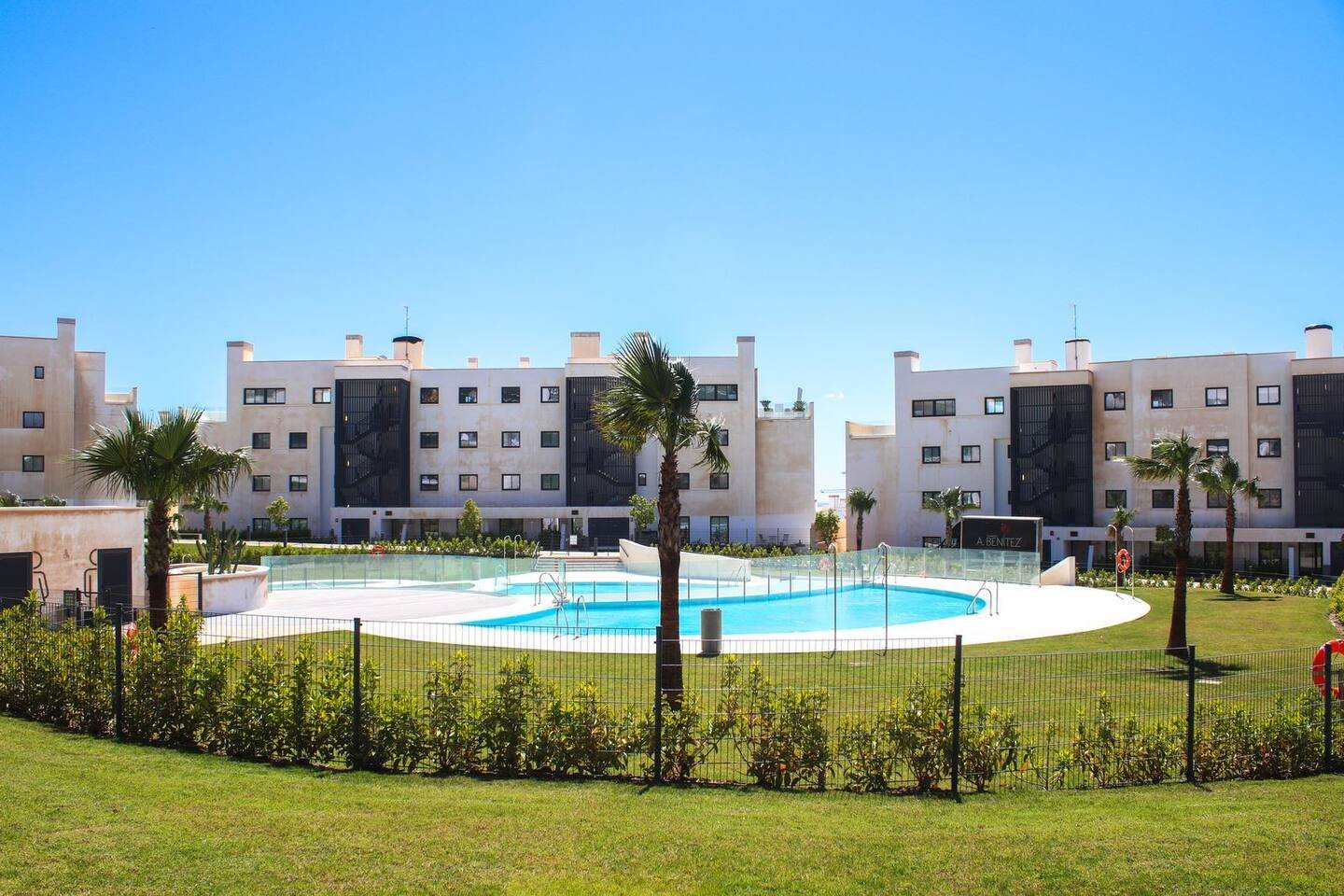 Boligen er lys og venlig og indbyder til afslapning, lejligheden er møbleret i moderne stil med kvalitetsmøbler. Ferieboligen indeholder åbent fuldt udstyret køkken i forbindelse med stuen. stuen er kombineret stue og spisestue med store vinduespartier ud til den veludstyret og solrige terrasse fra hvor man har direkte adgang til poolområdet som tilbyder 3 pools (1 børnepool) ved poolområdet er der masser af plads til at sole od dase dagen lang. 2 gode soveværelser med komfortable senge, 2 badeværelser. Fiberinternet er tilgængeligt i boligen. Integreret varm/kold aircondition i hele boligen. Privat parkeringsplads.