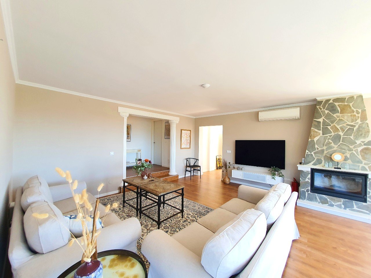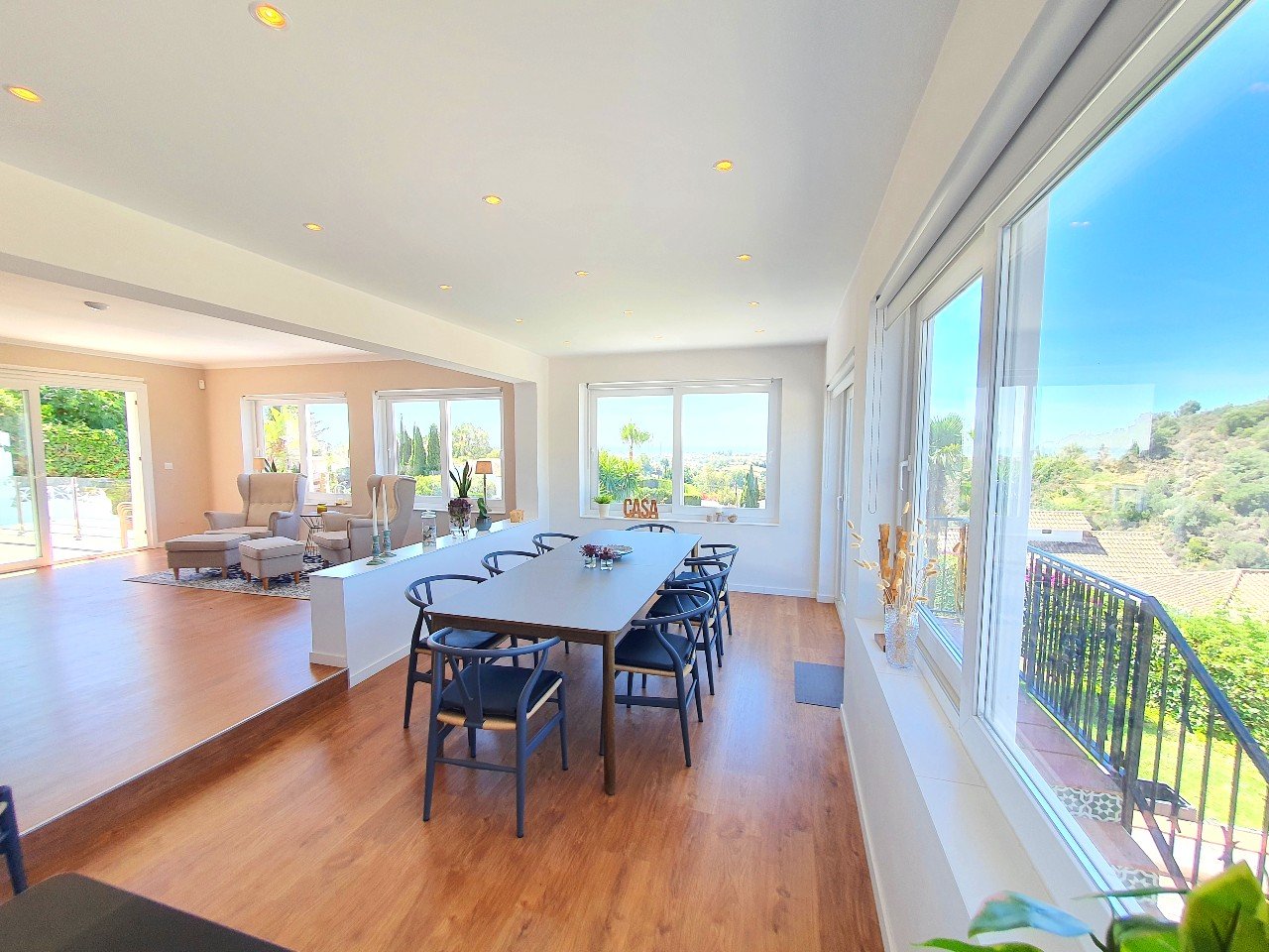 Så snart du træder ind i dette hjem, får du følelsen af, at du er hjemme. De store vinduer oversvømmer værelserne med naturligt lys og tilbyder en betagende panoramaudsigt over havet og det omkringliggende landskab.