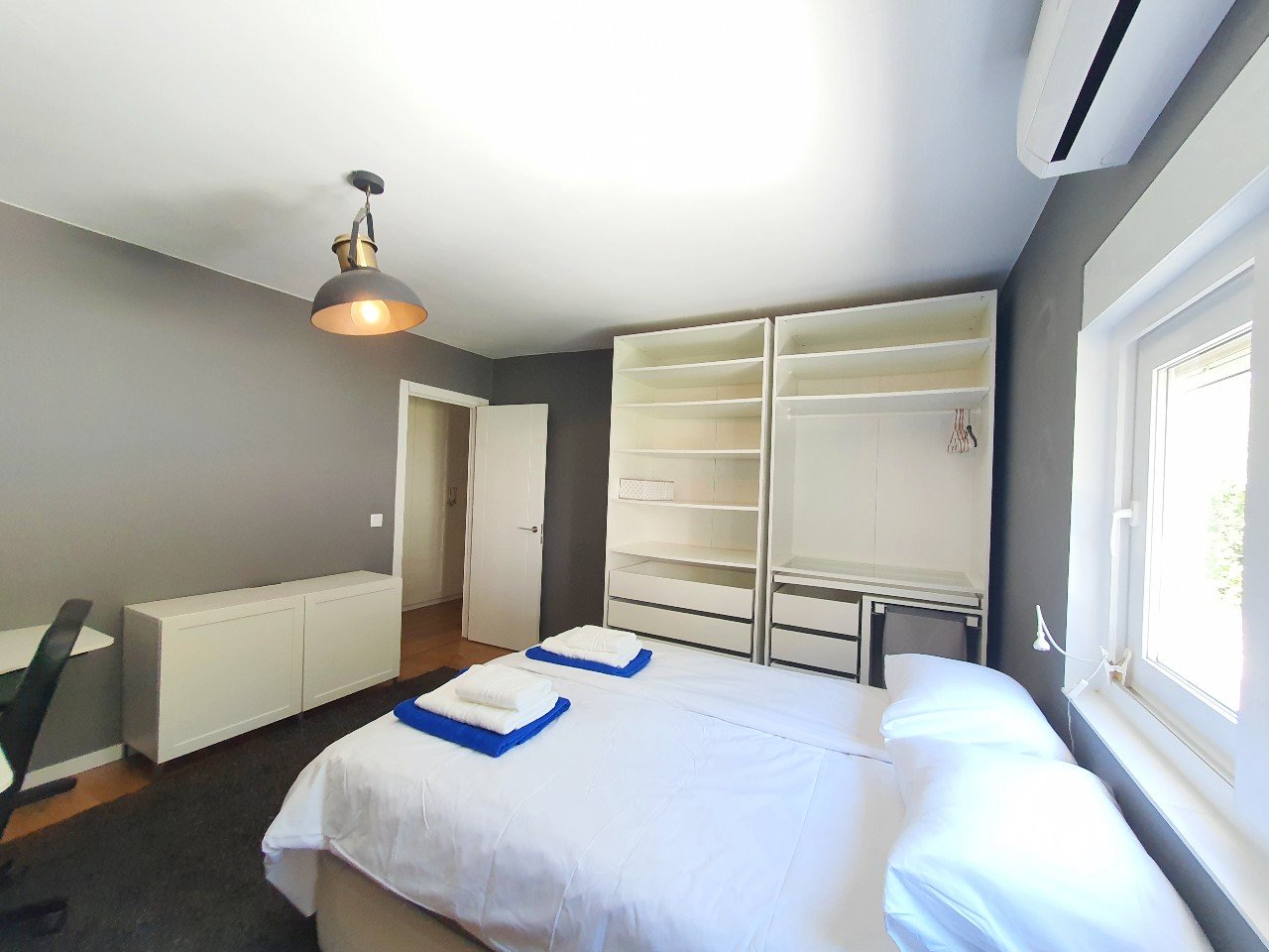 3 trin op fra stuen finder du soveværelsesområdet med 3 rummelige soveværelser og 3 moderne badeværelser en suite. Der er også et praktisk gæstetoilet på stueetagen.