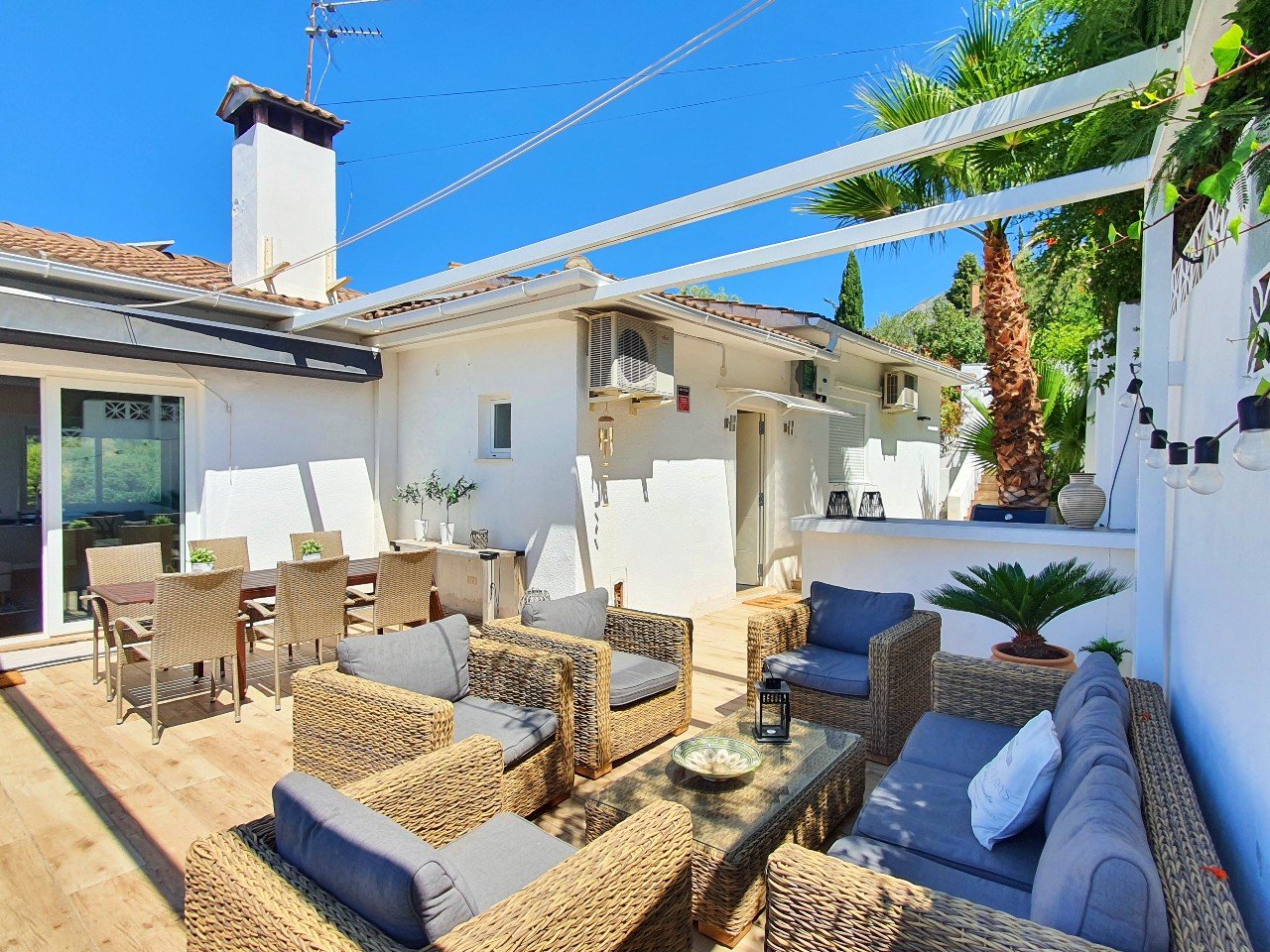 Udendørsområdet er perfekt til at underholde gæster eller blot slappe af i solskinnet.